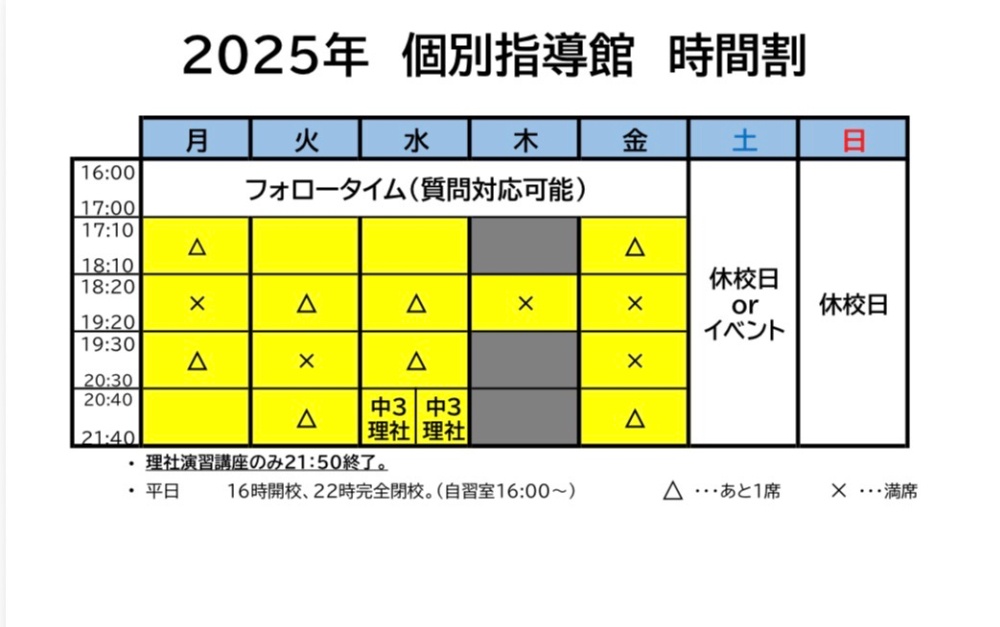 ・1コマ60分・定員6名の学校の課題を進めるコース・個別で質問対応・2025年度卒塾生のみ募集予定